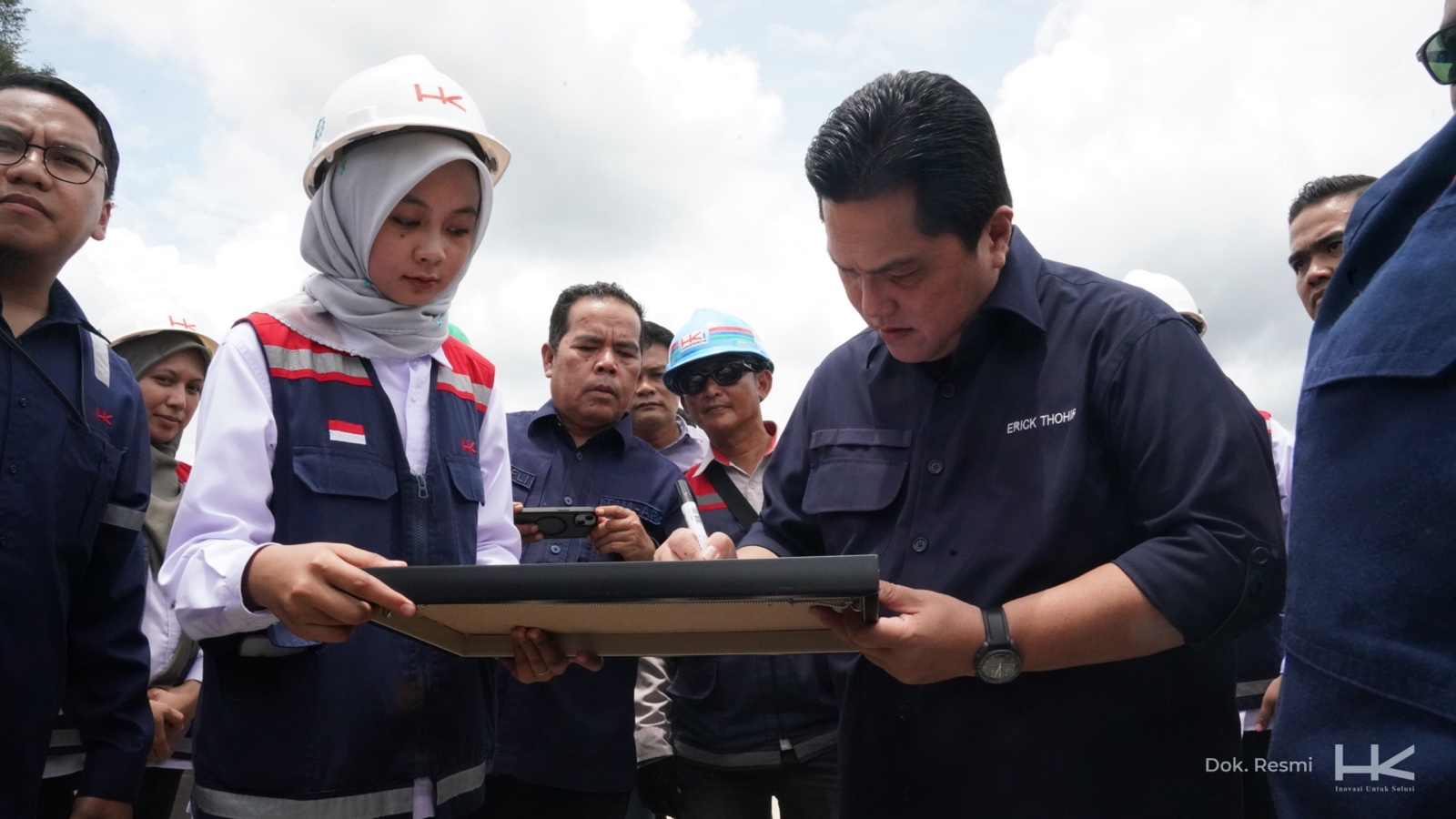 Dalam kunjungannya ke proyek ini, Erick Thohir didampingi oleh Staf Khusus V Menteri BUMN Tsamara Amany dan Anggota Komisi VI DPR RI Andre Rosiade.