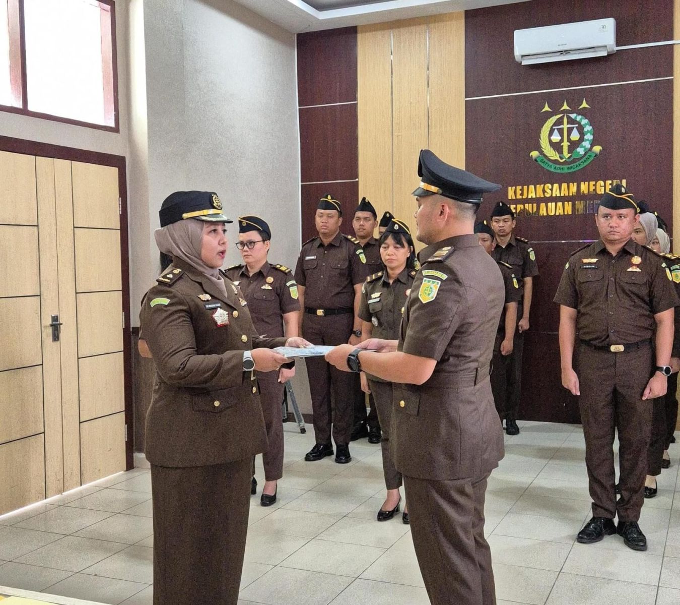 Meranti,- Kasi Pidana Khusus (Pidsus) yang sebelumnya di jabat oleh Sri Madona Rasdy SH MH di Gantikan Muhamad Ulinnuha, SH, Sri Madona Pindah Ke Kejari Bengkalis dan Ulinnuha dari Kejari Inhu Pindah Kejari Kepulauan Meranti Pengukuhan di Aula Kantor Kejari Kepulauan Meranti Senin (16/6/2025) Siang.
